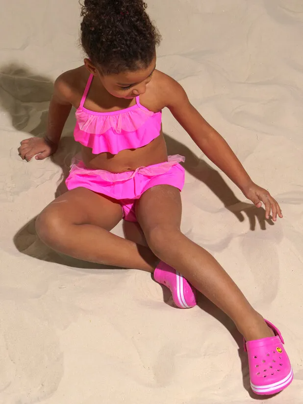 Купальник раздельный, резинка в комплекте. Быстросохнущий материал. Благодаря UF-защите, ткань сохраняет первоначальный вид даже при длительном пребывании на солнце. Отделка сеткой.