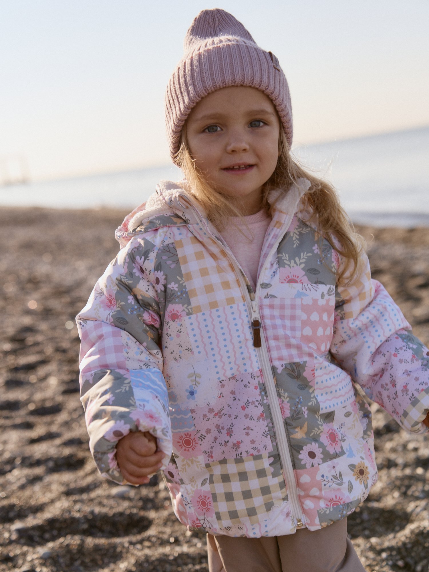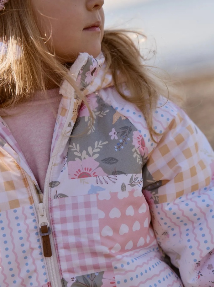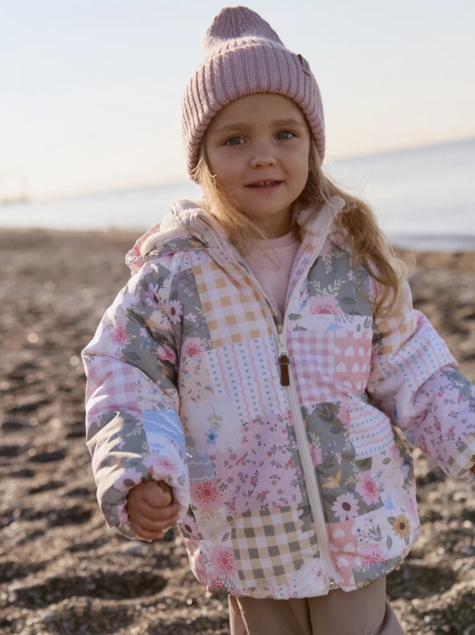 Курточная ткань с интересным принтом и специальной пропиткой защищает от грязи, влаги и ветра.