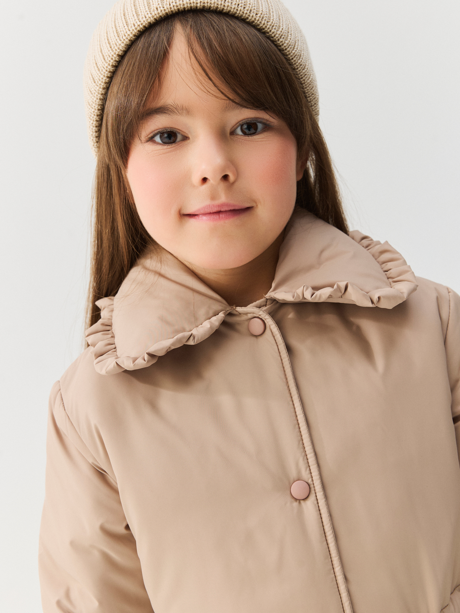 Утепленный воротник с нежной рюшей.