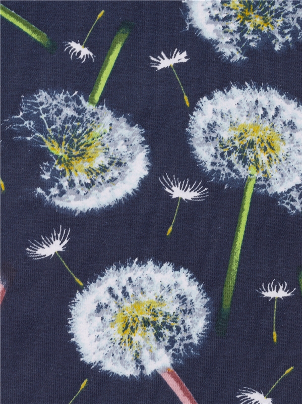 кулир с лайкрой / хлопок 92% + лайкра 8% - / одуванчики с пушинками на темно-синем / -