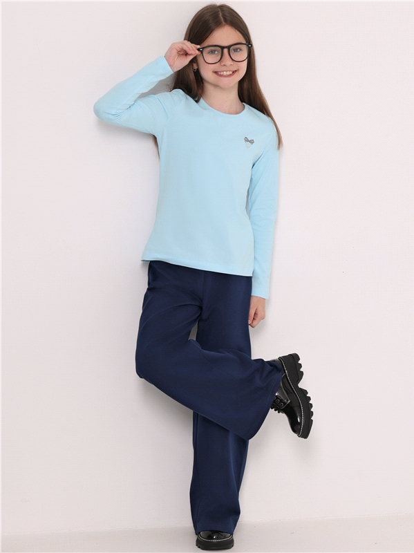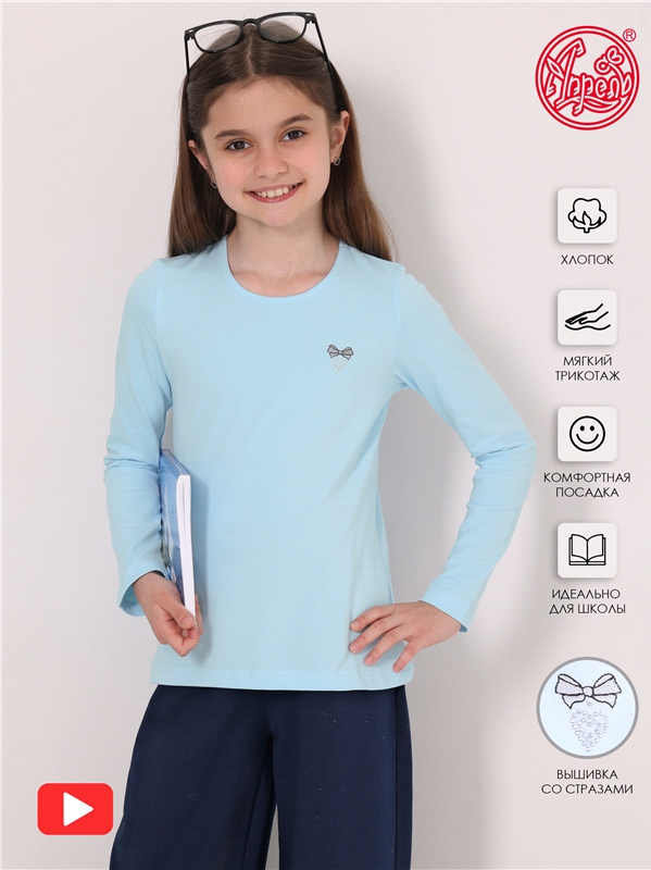 кулир с лайкрой / хлопок 92% + лайкра 8% светло-голубой109 / - / Сердце с бантом вышивка