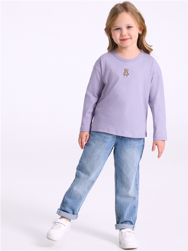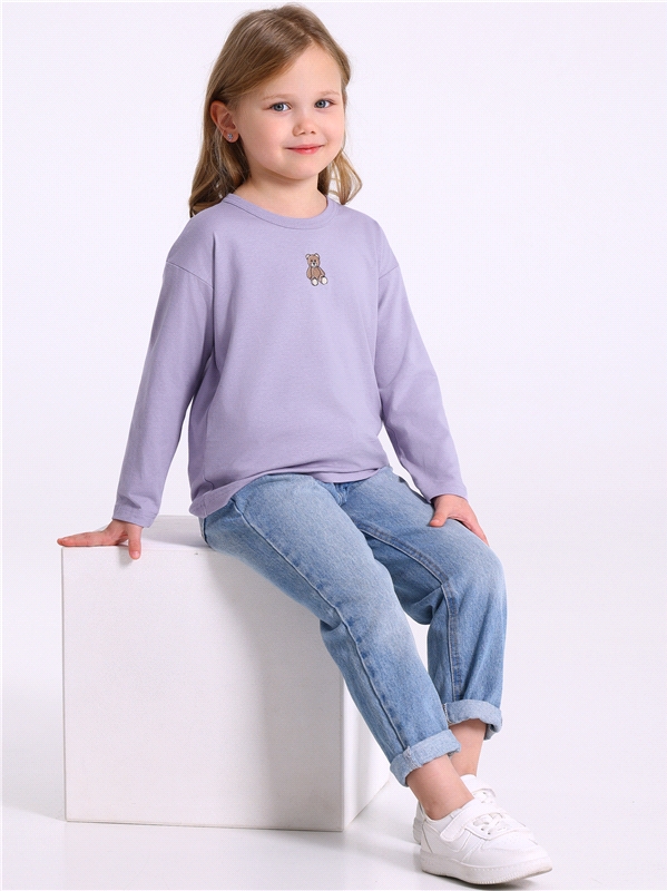 кулир / хлопок 100% светло-сиреневый248 / - / Мишка-тедди вышивка