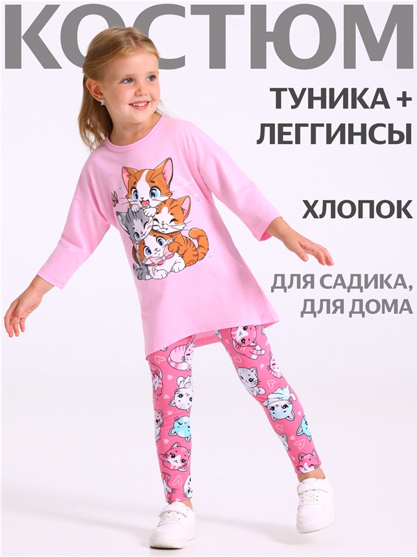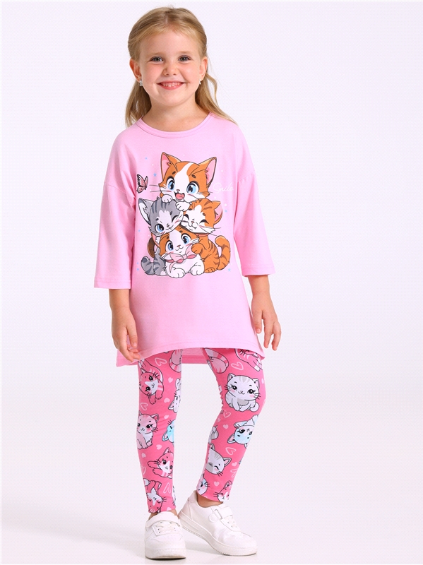 кулир / хлопок 100% - / светло-розовый14+котики аниме на розовом / Котята играют