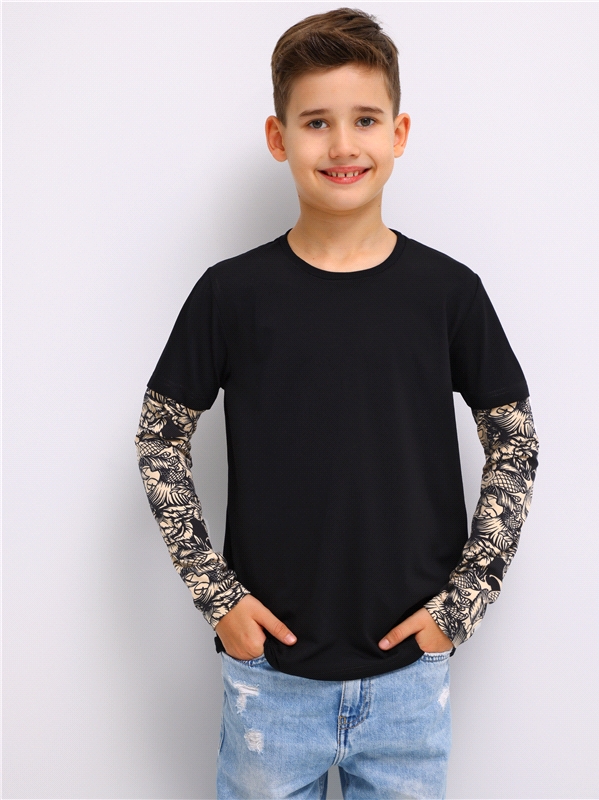 кулир с лайкрой / хлопок 92% + лайкра 8% - / черный+карпы тату / -