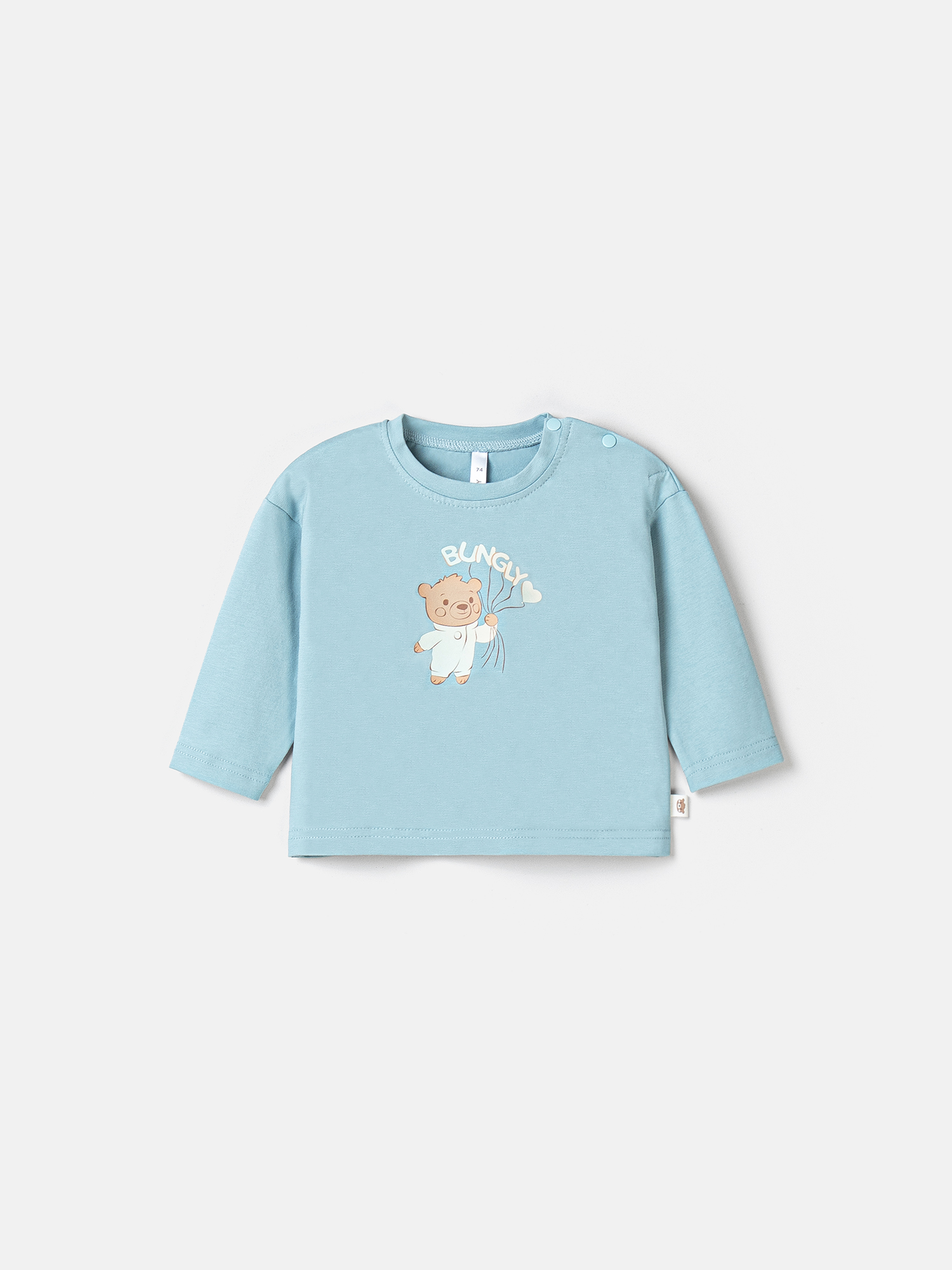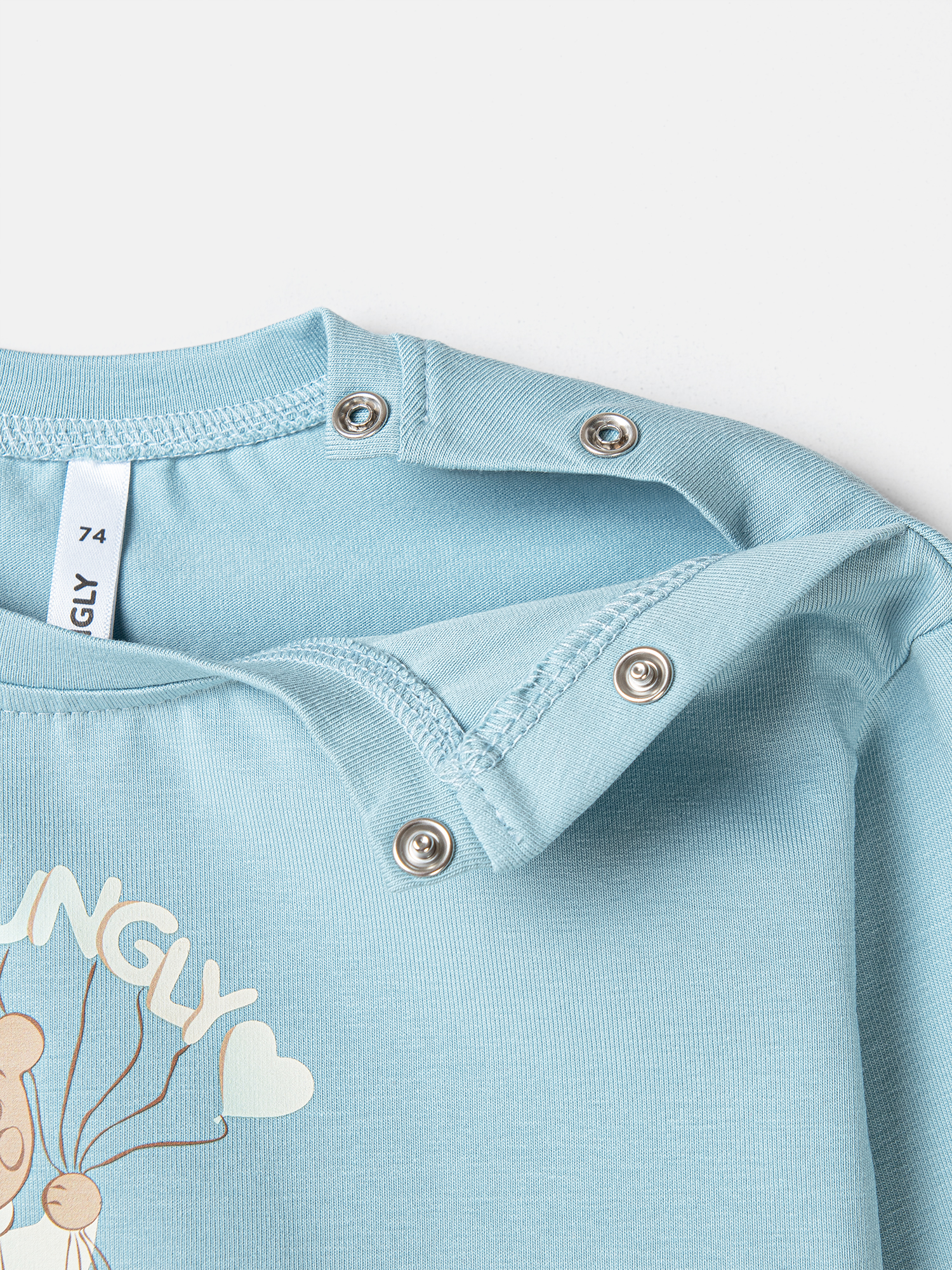 Комфортный лонгслив с ярким и стойким принтом-мишкой понравится малышам.