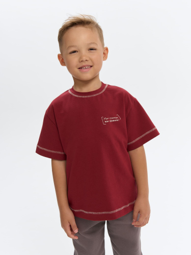 Контрастная строчка по горловине, низу короткого рукава и низу изделия придаёт модели стильный внешний вид, а надпись на рукаве добавляет индивидуальности и делает модель частью уникальной коллекции.