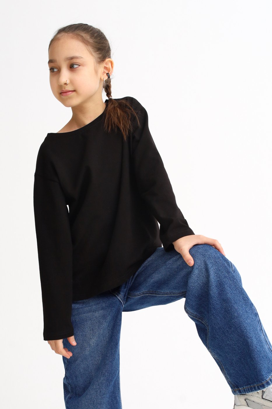 Лонгслив over size принт Динозавр в городе черный