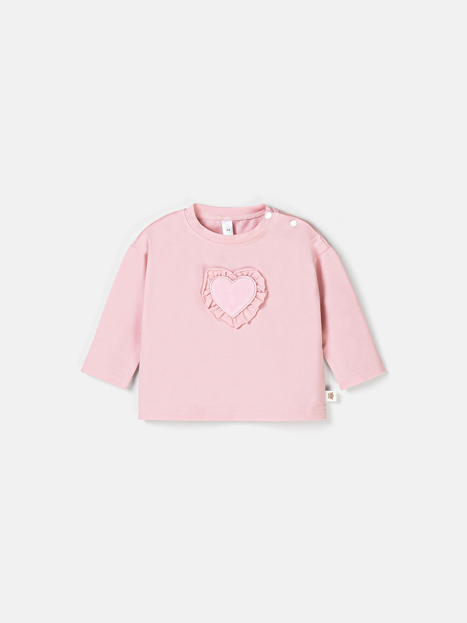 Комфортный лонгслив с объемным сердечком понравится романтичным девочкам.