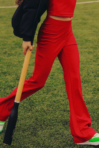 Лосины-клеш в рубчик клюква