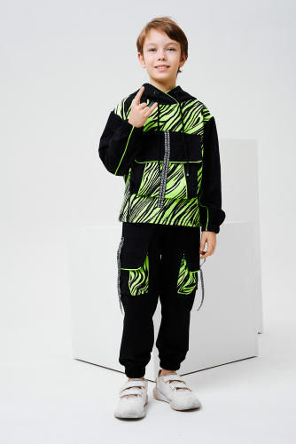 Хлопковая футболка для мальчика с короткими рукавами. Сшита из лёгкого трикотажа кулирка и украшена принтом. Рукава и низ изделия обработаны плоскими швами. На задней части горловины присутствует усиление.