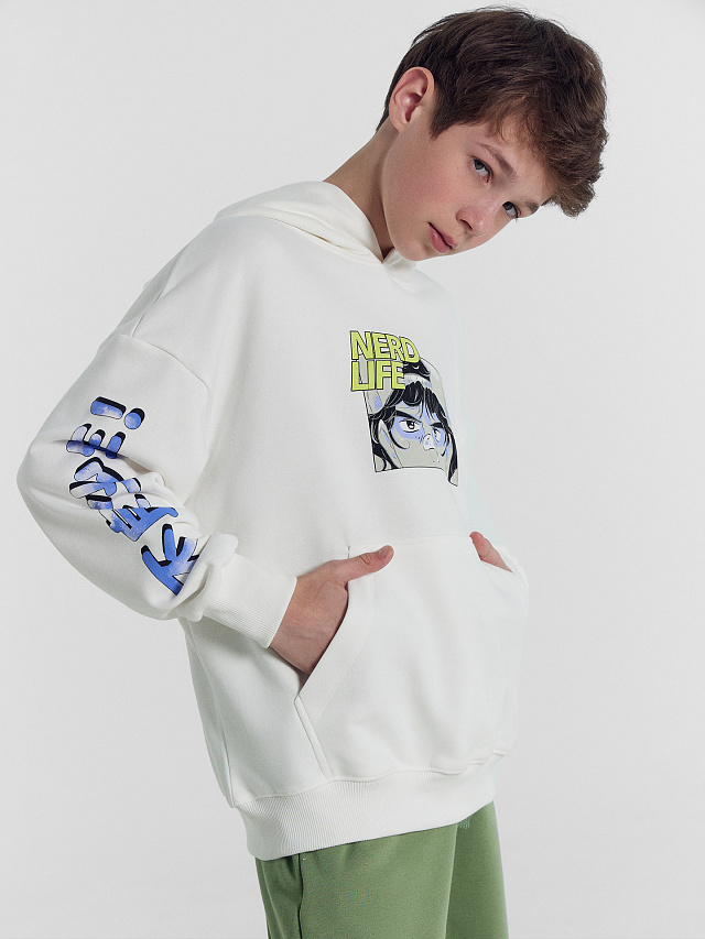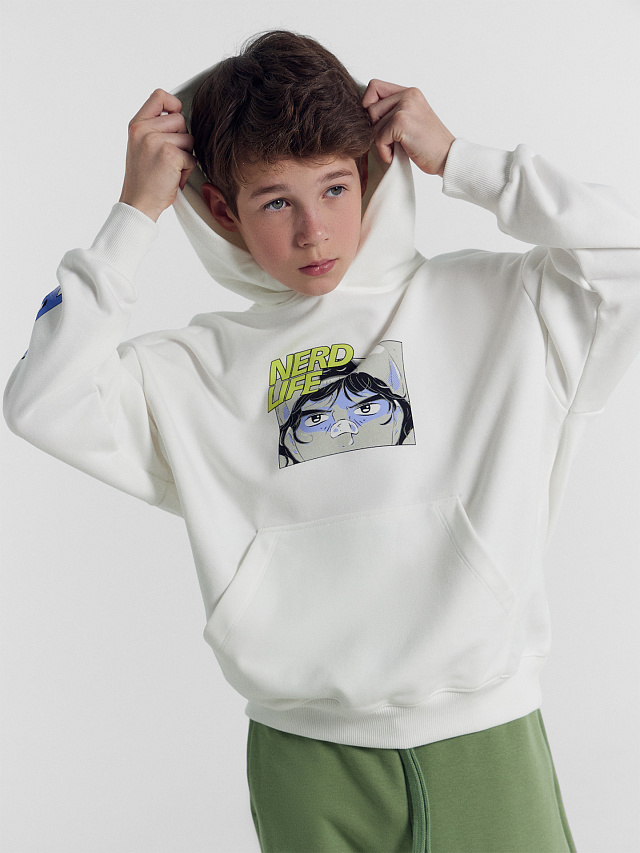 Худи для мальчиков белое с надписью "Nerd life"