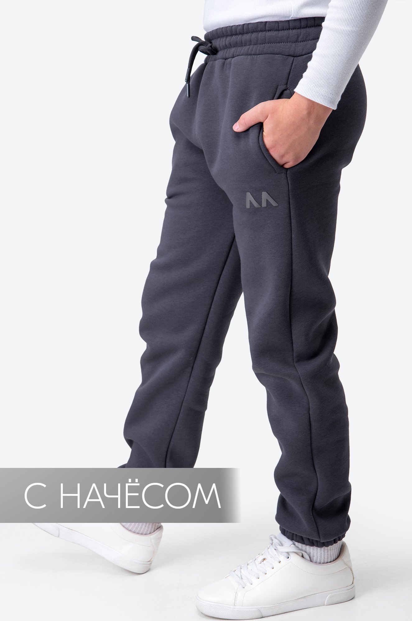 *замеры выборочные, могут незначительно отличаться. подростков выполнены из мягкого футера с начёсом. Утепленные штаны антрацитового цвета дополнены декоративной нашивкой с брендовым логотипом.