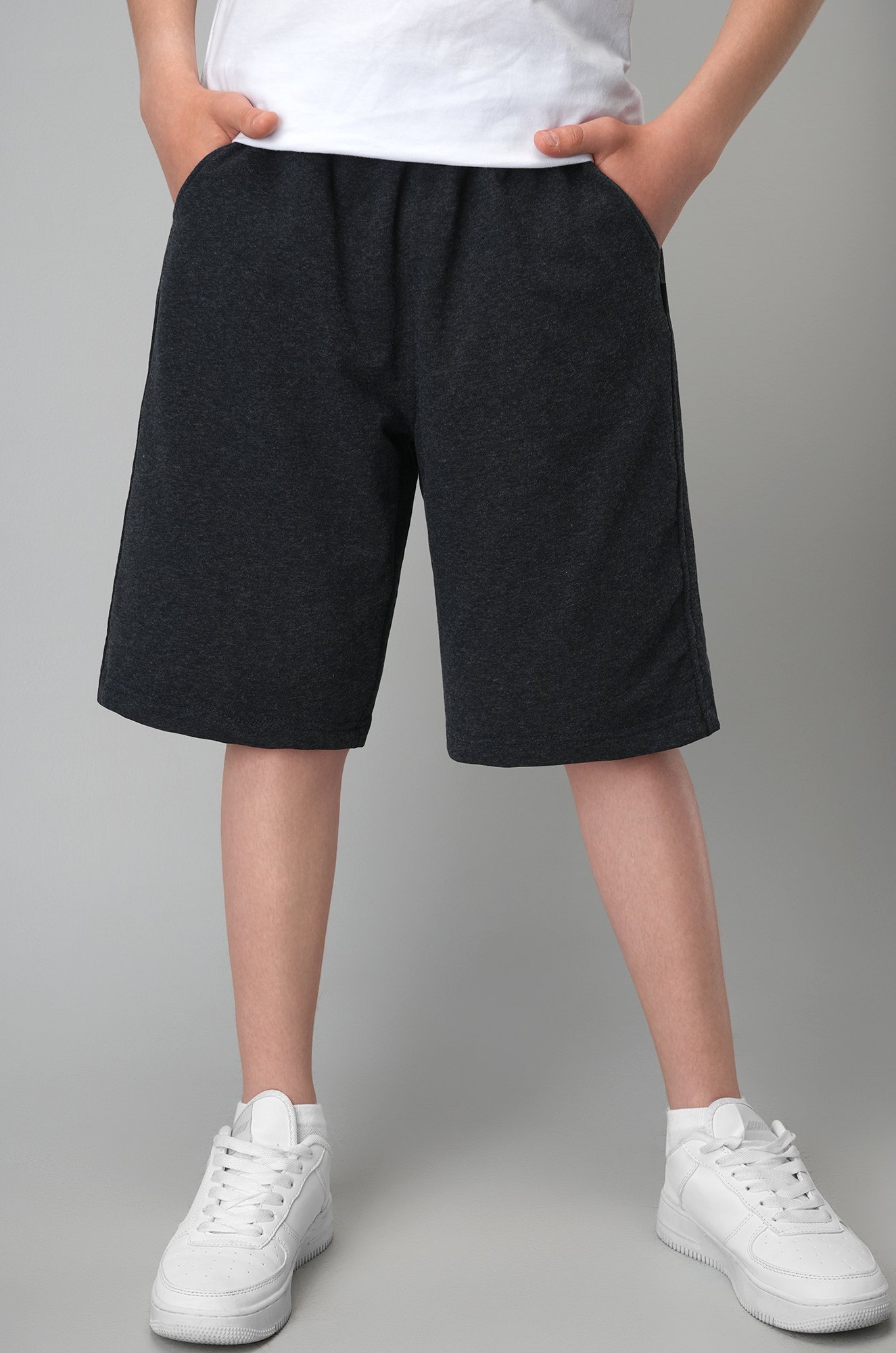 Трикотажные шорты длиной до колена — стильный и практичный выбор для любого школьника.
