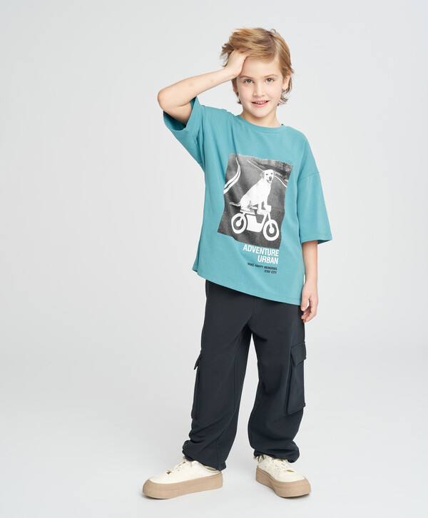 1138 р. 1750 р. Джоггеры карго детские черные с карманами Button Blue