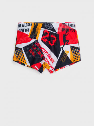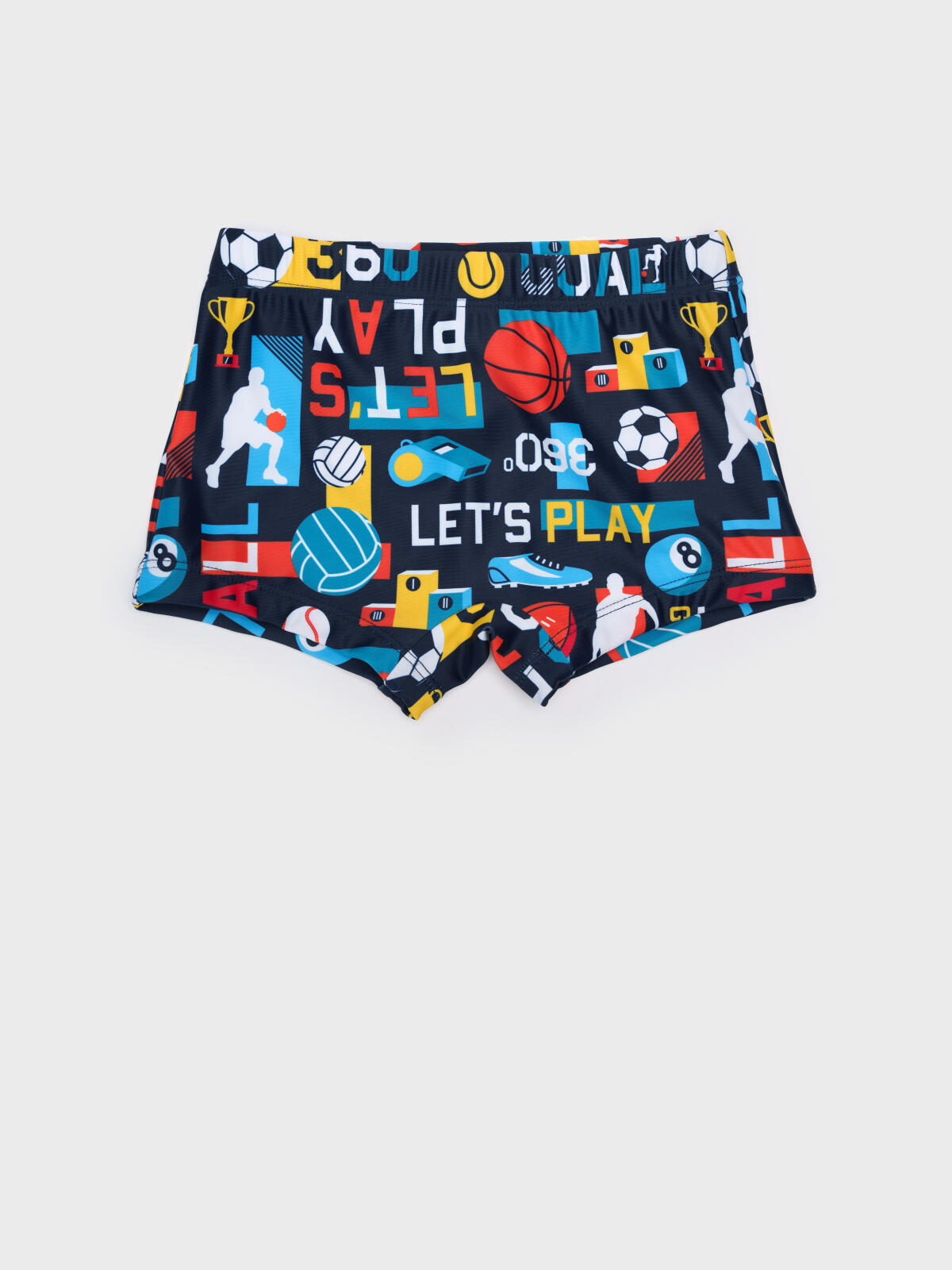 Плавки-шорты детские для мальчика. Плавки для пляжа и бассейна выполнены из быстросохнущего материала. Утяжка пояса шнурком. Благодаря хлор-защите и UF-защите ткань долго сохраняет первоначальный внешний вид.