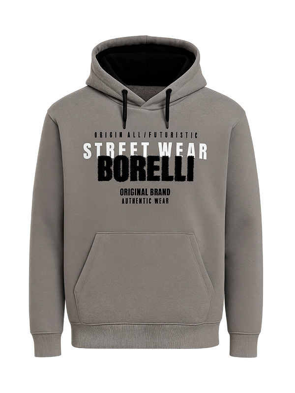 Худи для мальчика Alessandro Borelli — стильная модель в духе уличной моды, сочетающая комфорт и современный дизайн. Изготовлено из мягкого хлопкового материала, который обеспечивает тепло и приятные ощущения. Модель имеет свободный крой, вместительный карман-кенгуру и капюшон с контрастной подкладкой и шнурками. Принт на груди с надписью “Street Wear Borelli / Original Brand Authentic Wear” придаёт образу динамичный и модный характер.