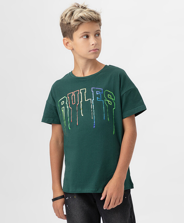 425 р. 850 р. Футболка хлопковая со спущенным рукавом и принтом зеленая Button Blue