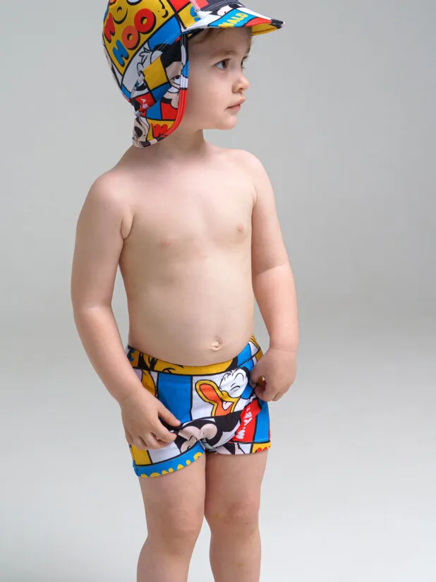Плавки с персонажем Disney из быстросохнущего материала. Утяжка пояса шнурком. Благодаря UF-защите, ткань сохраняет первоначальный вид даже при длительном пребывании на солнце. Подходят для плавания в бассейне.