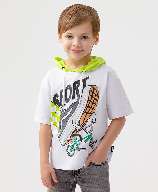 400 р. 800 р. Футболка с капюшоном белая Button Blue