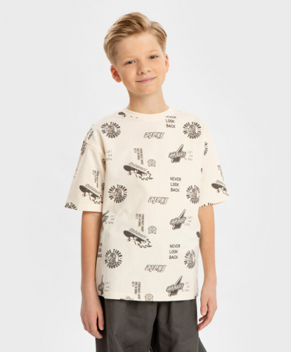 630 р. 900 р. Футболка с коротким рукавом и принтом серая для мальчика Button Blue