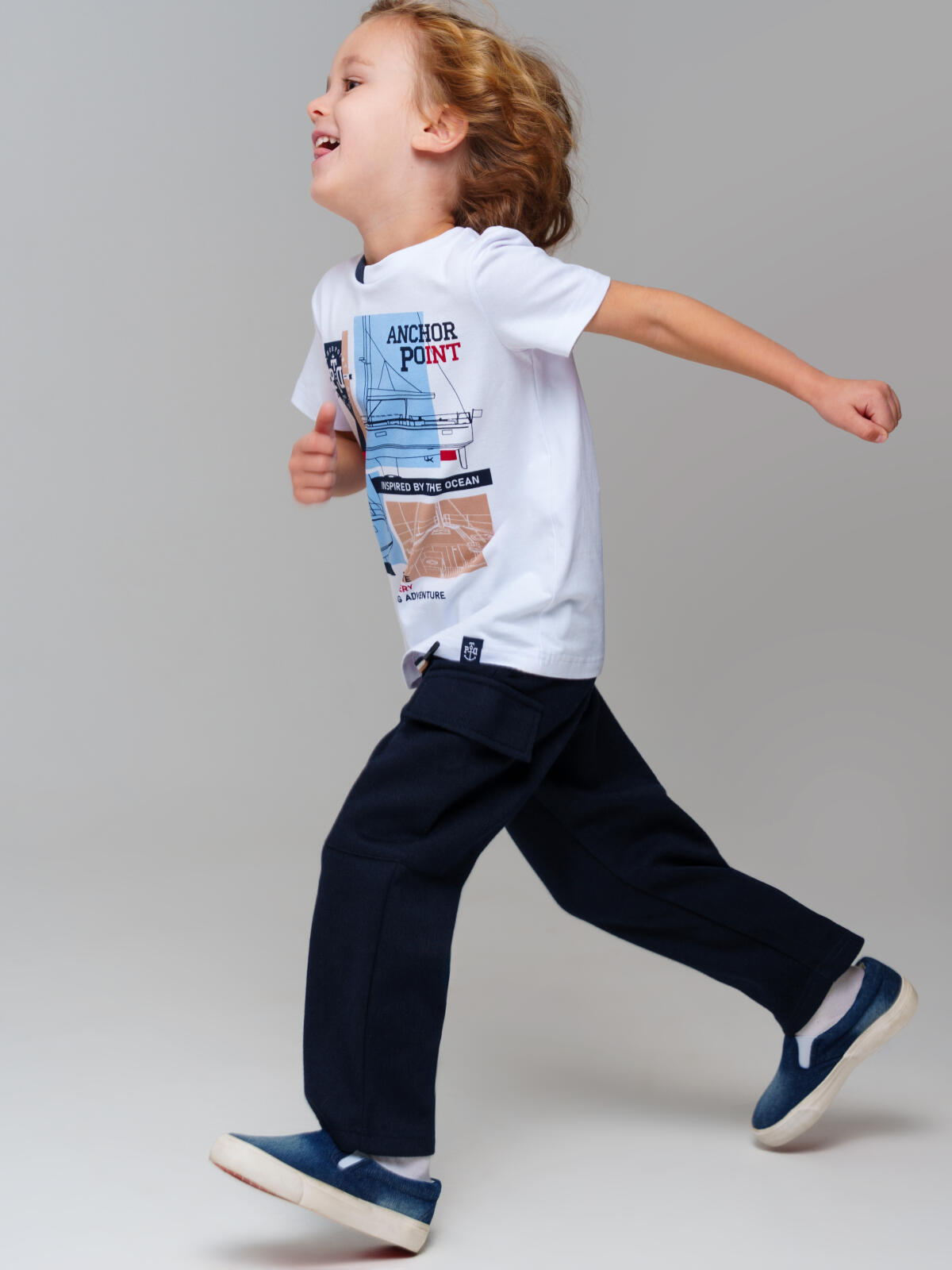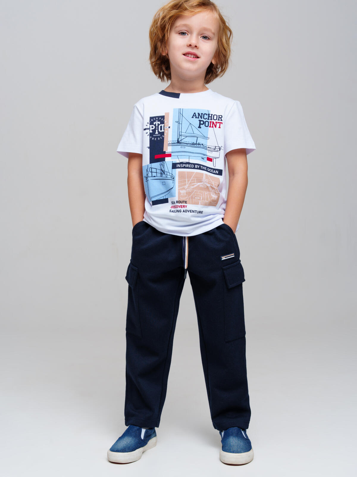 Брюки детские для мальчика. Штаны на резинке со шнурком. Высокое содержание хлопка. Удобные боковые карманы. Модель выполнена из качественного и приятного на ощупь трикотажа.
