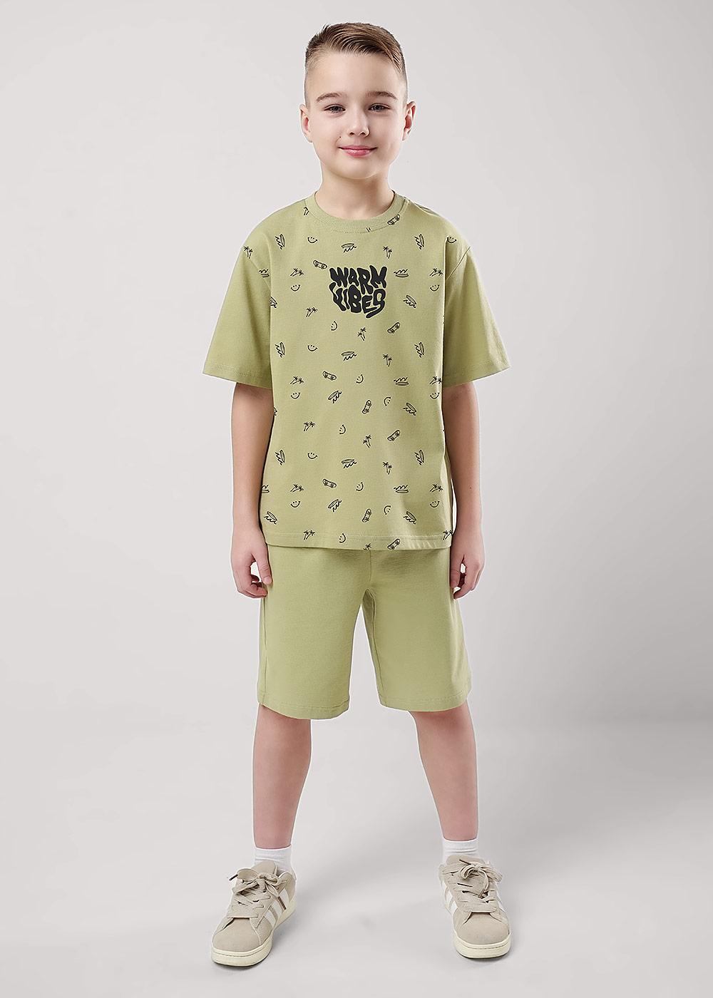 "Описание: Стильная объёмная футболка идеально дополнит твой гардероб. Модель выполнена из хлопкового трикотажного полотна и доплнена минималистичной набивкой. Создавай классные образы на каждый день, сочетая модель с шортами из новой коллекции!