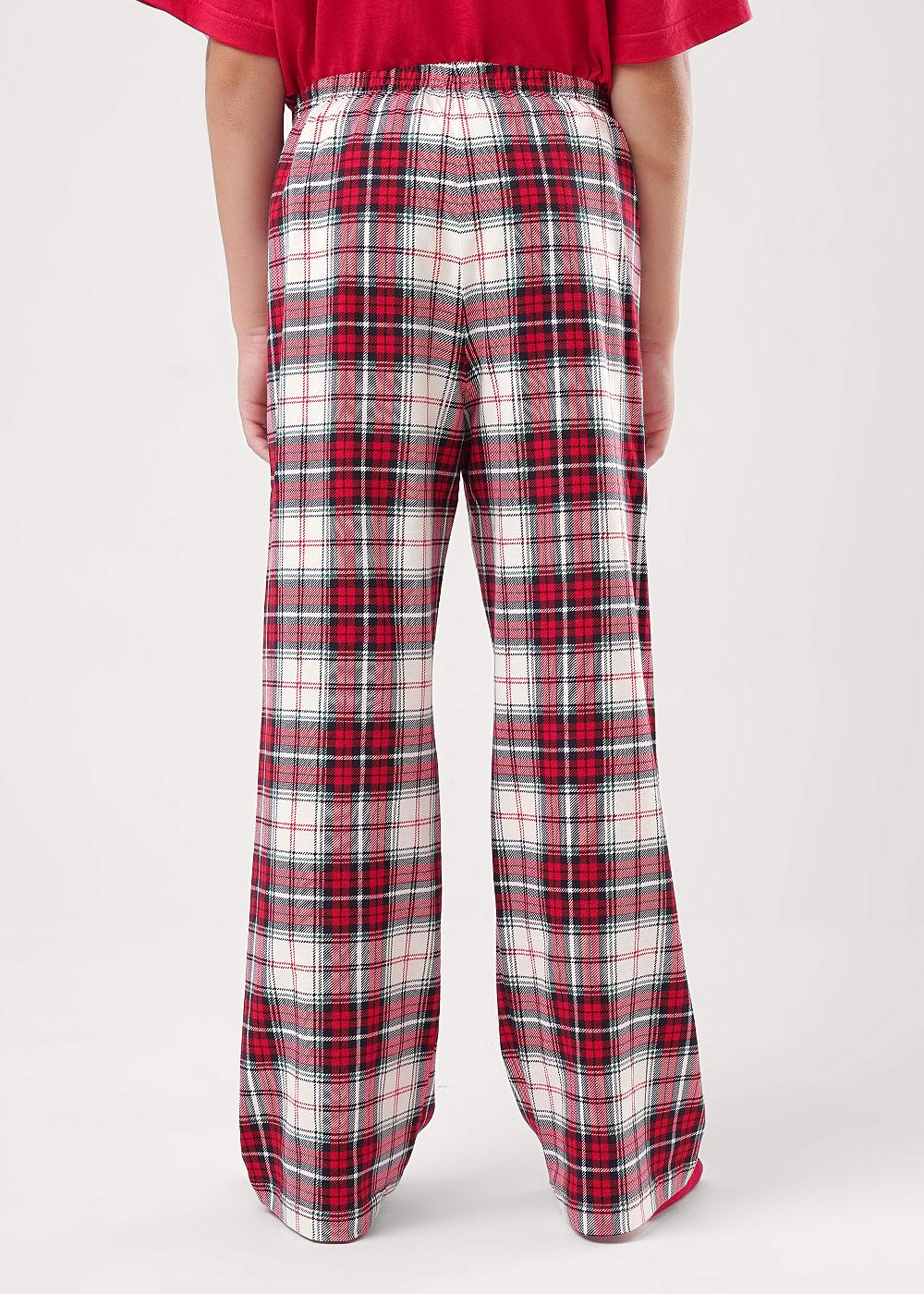 "Описание: Новогодняя пижама для подростков,состоящая из футболки и брюк. Футболка свободного кроя спереди украшена тематическим принтом. Брюки прямые среднего объема с эластичным поясом.