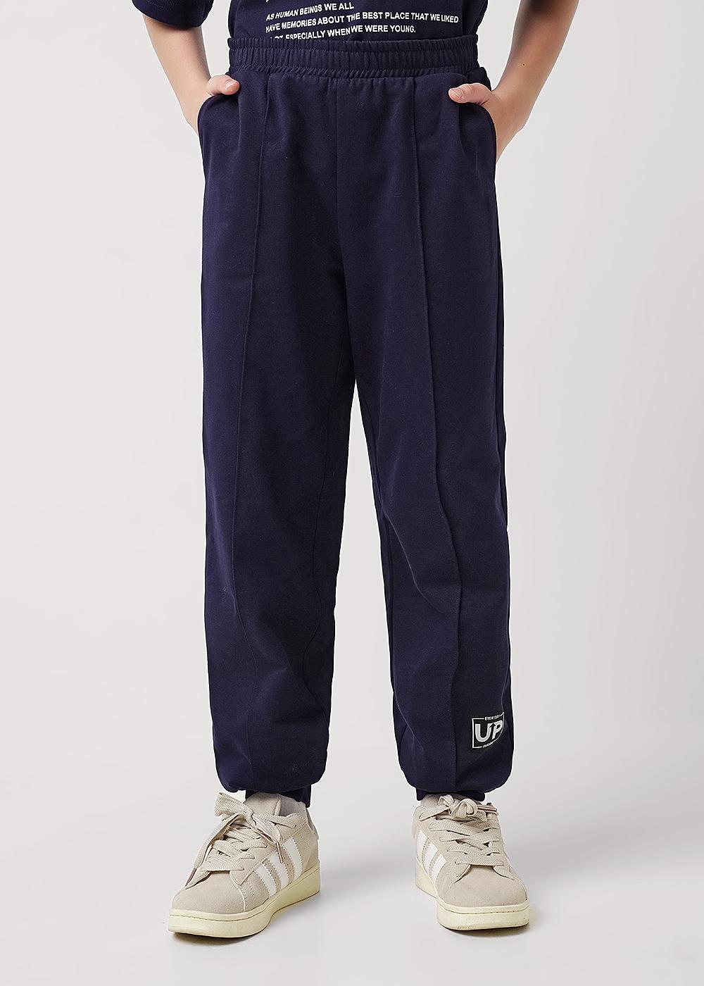 "Описание: Стильные брюки из мягкого футера отлично дополнят ваш гардероб! Эластичный пояс обеспечит комфорт и идеальную посадку. Модель с декоративными защипами спереди дополнена стильной минималистичной нашивкой и манжетами по низу.