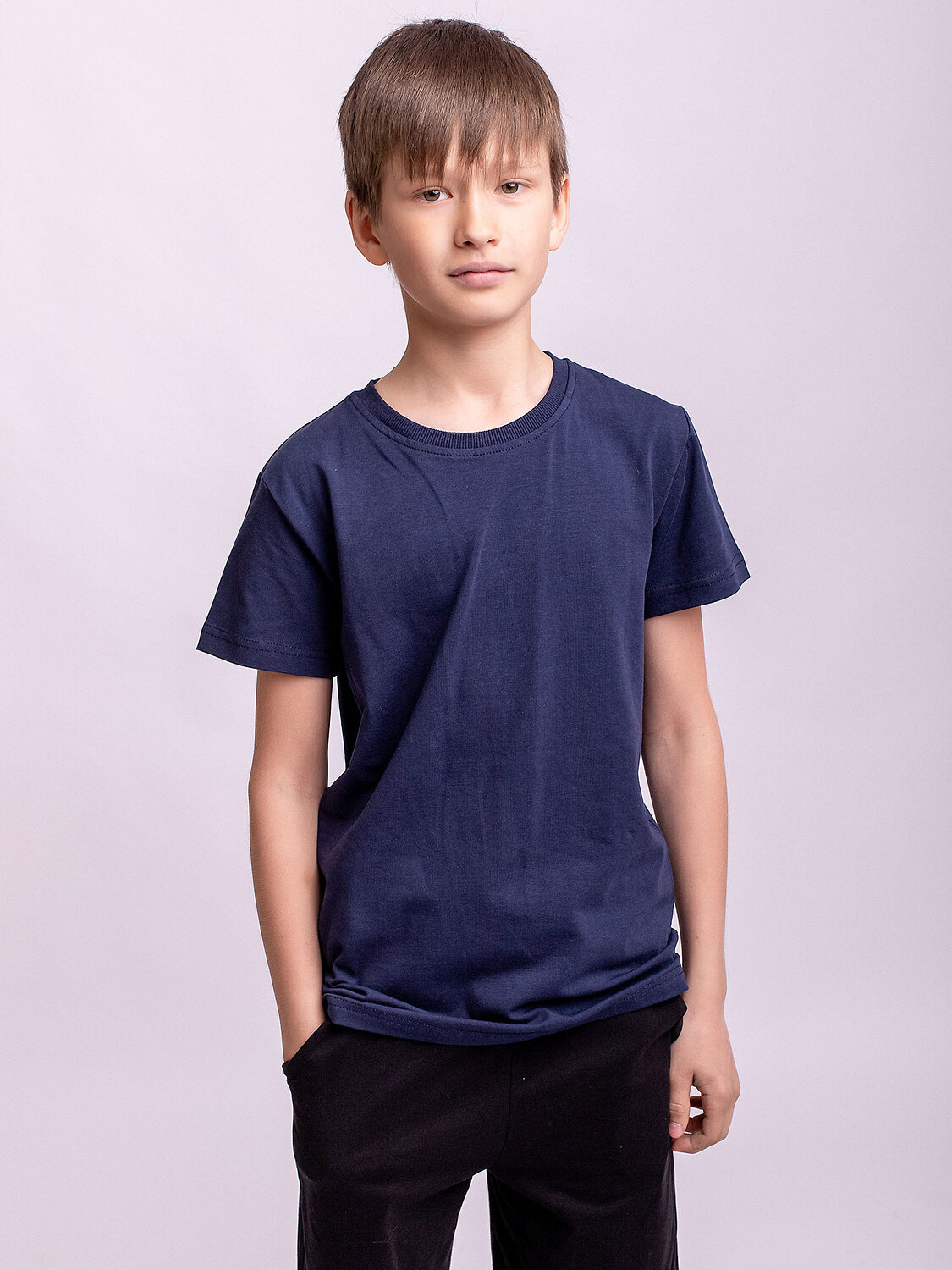 Футболка однотонная синяя для детей и подростков с коротким рукавом.