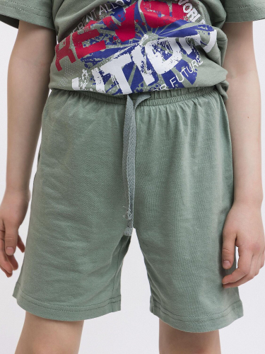 Футболка с коротким рукавом для мальчика из натурального хлопка. Стильная расцветка хаки и принт. Классический круглый вырез – удобная посадка, не натирает шею. Футболка идеальна для садика, прогулок и активных игр. Легко комбинируется с любой детской одеждой: брюками, шортами, джинсами.