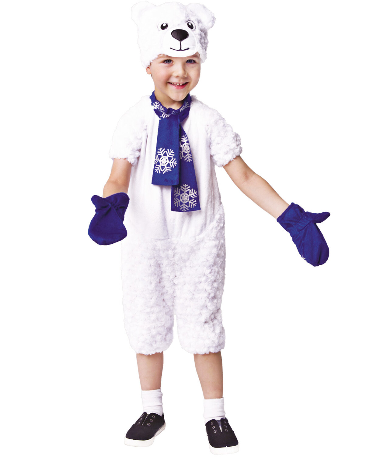 Костюм Медведь Полярный – такой пушистый и белый образ, который подойдет как для мальчиков, так и для девочек. Этот костюм можно надеть на утренник или елку, а также для спектакля или костюмированного выступления. Наряд, хоть и простой, но выделит малыша и подчеркнет его мягкий и добрый характер. В комплект образа входит комбинезон, шапка, шарф и варежки. Подойдет для детей 3-5 лет.
