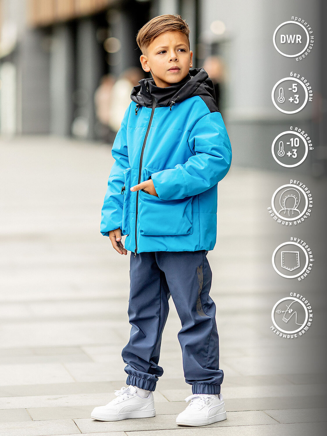 Куртка для мальчика Андреас демисезонная в голубой расцветке. Утепленная куртка в стиле бомбер из мембраны с нашивками и объемными карманами. Ткань имеет водоотталкивающую пропитку DWR. Высокотехнологичный утеплитель слайтекс - гипоаллергенный, износоустойчивый и водостойкий материал, который хорошо сохраняет тепло.
