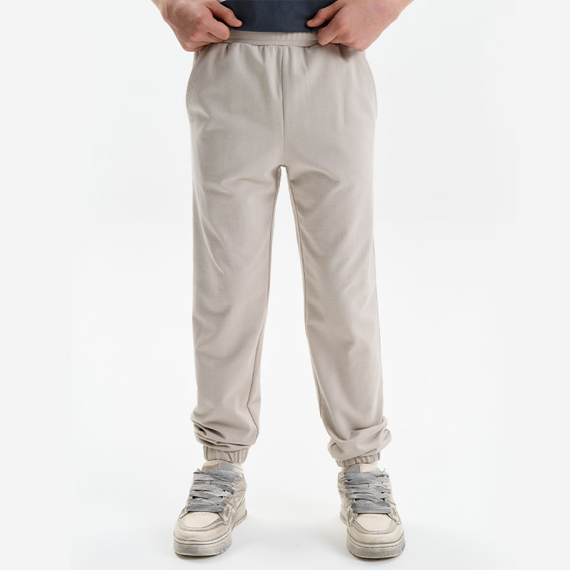 Состав: 100%хлопокОписание: Брюки для мальчика на резинке из тонкого трикотажа. Комфортные спортивные штаны для мальчика свободного силуэта, по низу брюк тунельная резина. Пояс из основной ткани, внутри широкий эластик, прострочен двумя строчками. Брюки с карманами выполнены из футера. Внутренняя утяжка по поясу шнурком.