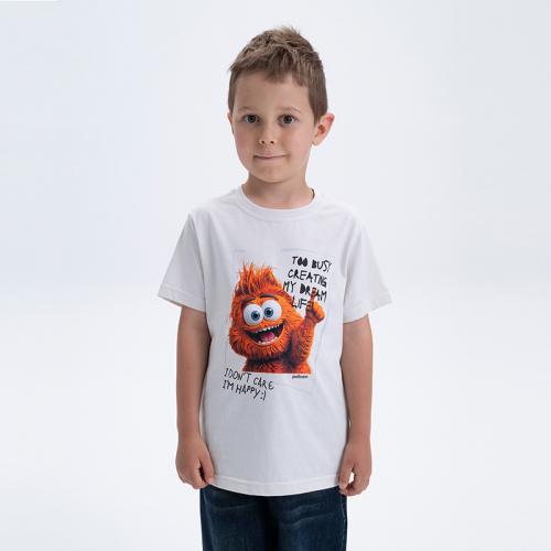 Состав: 100%хлопокОписание: Футболка для мальчика прямого кроя - это идеальный выбор для активного ребенка. Вырез горловины обработан эластичной тканью — она прекрасно держит форму, не растягивается, при этом ребёнку удобно надевать и снимать футболку. Футболка с принтом и надписями. Перевод надписей: слишком занят созданием жизни своей мечты. Мне все равно, я счастлив :) Спортивная футболка подходит как для подростков так и для малышей в детский сад. Подходит для любого времени года.