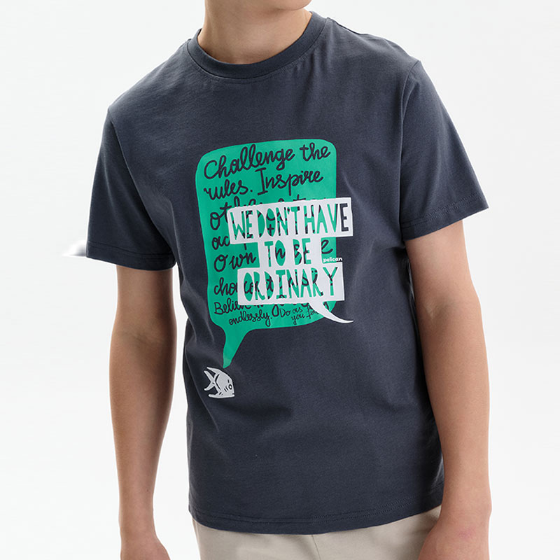 Состав: 100%хлопокОписание: Футболка для мальчика маленького объема. Вырез горловины обработан эластичной рибаной — она прекрасно держит форму, не растягивается, при этом ребёнку удобно надевать и снимать футболку. Футболка с принтом и надписями. Перевод: бросай вызов правилам: Вдохновляй других: принимать собственные уникальные особенности: бесконечно верь в себя: Делай как чувствуешь: Нам не обязательно быть обычными.