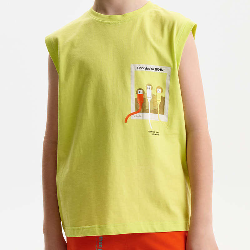 Состав: 100%хлопокОписание: Майка для мальчика прямого силуэта увеличенного объема, с чуть расширенным плечевым поясом, с углубленной проймой, удлиненная. Вырез горловины обработан эластичной тканью — она прекрасно держит форму, не растягивается, при этом ребёнку удобно надевать и снимать майку. Перевод: Заряжен до 100%! -вежливость -спокойствие -счастье: не забудь взять их с собой!