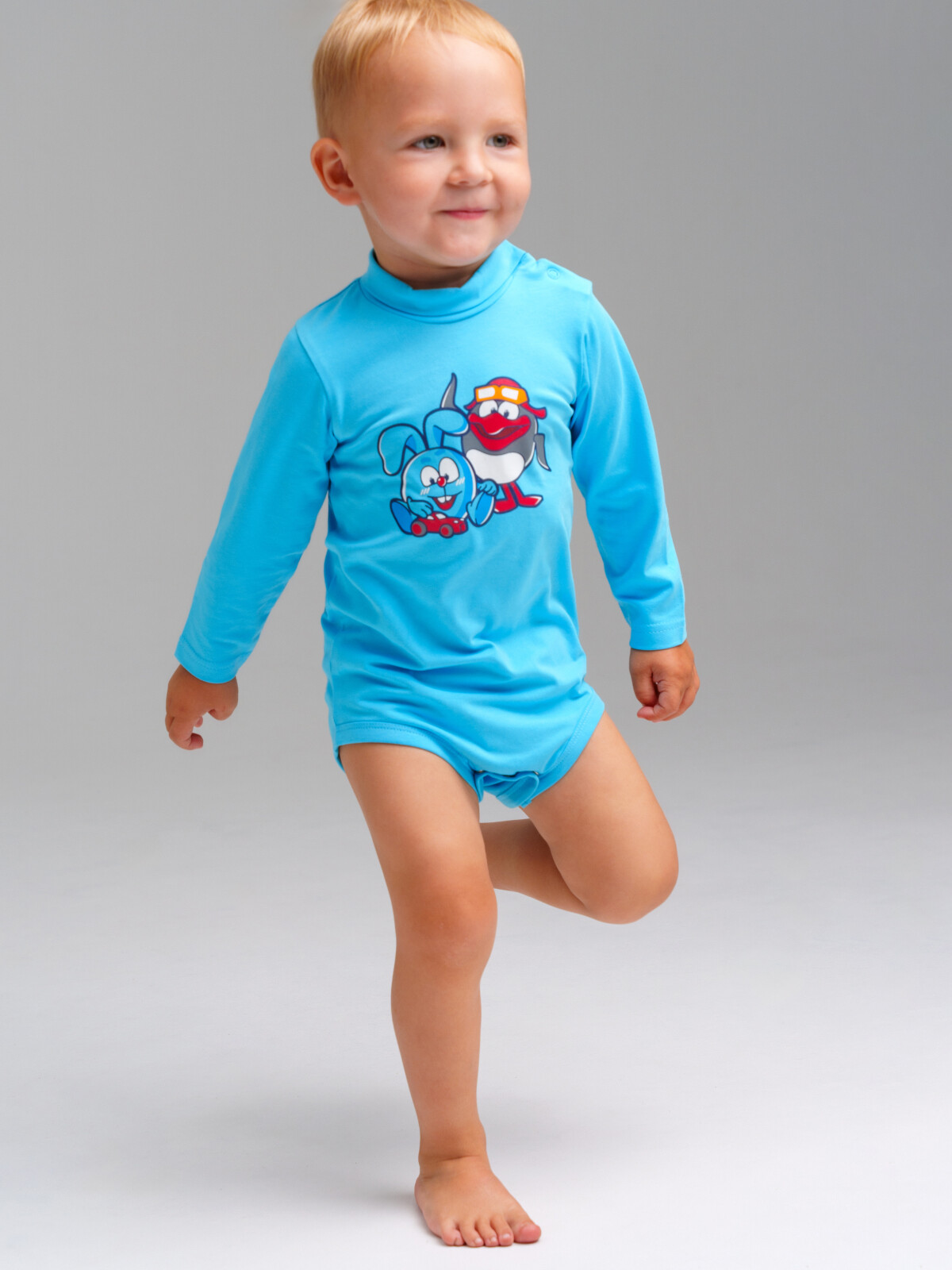 Детское боди для мальчика. Боди с длинным рукавом из натурального хлопкового двойного трикотажа. Высокое содержание хлопка. Кнопки внизу – 2 ряда, боди растет вместе с малышом. Модель из капсульной коллекции СМЕШАРИКИ, соберите полный образ в едином стиле!