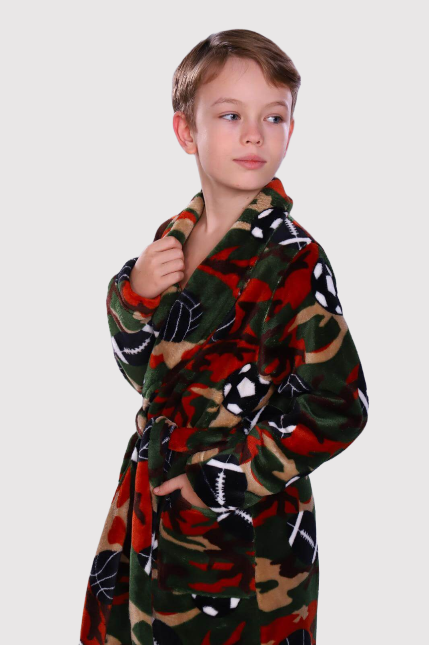 Стильный детский халат на запах, со съемным поясом и накладными карманами. Изделие изготовлено из мягкой ткани, которая позволяет телу дышать,  хорошо впитывает влагу после душа, быстро сохнет. Халатик очень мягкий и приятный к телу. Оригинальный дизайн и яркая цветовая гамма, поднимут настроение вашему ребенку!