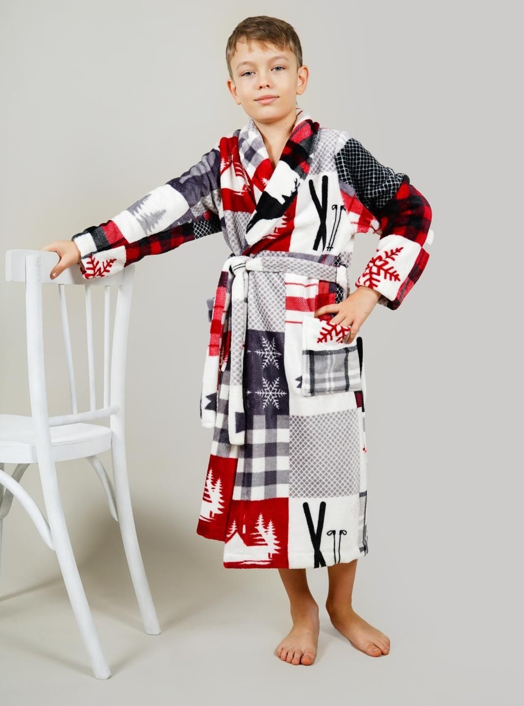 Стильный детский халат на запах, со съемным поясом и накладными карманами. Изделие изготовлено из мягкой ткани, которая позволяет телу дышать,  хорошо впитывает влагу после душа, быстро сохнет. Халатик очень мягкий и приятный к телу. Оригинальный дизайн и яркая цветовая гамма, поднимут настроение вашему ребенку!