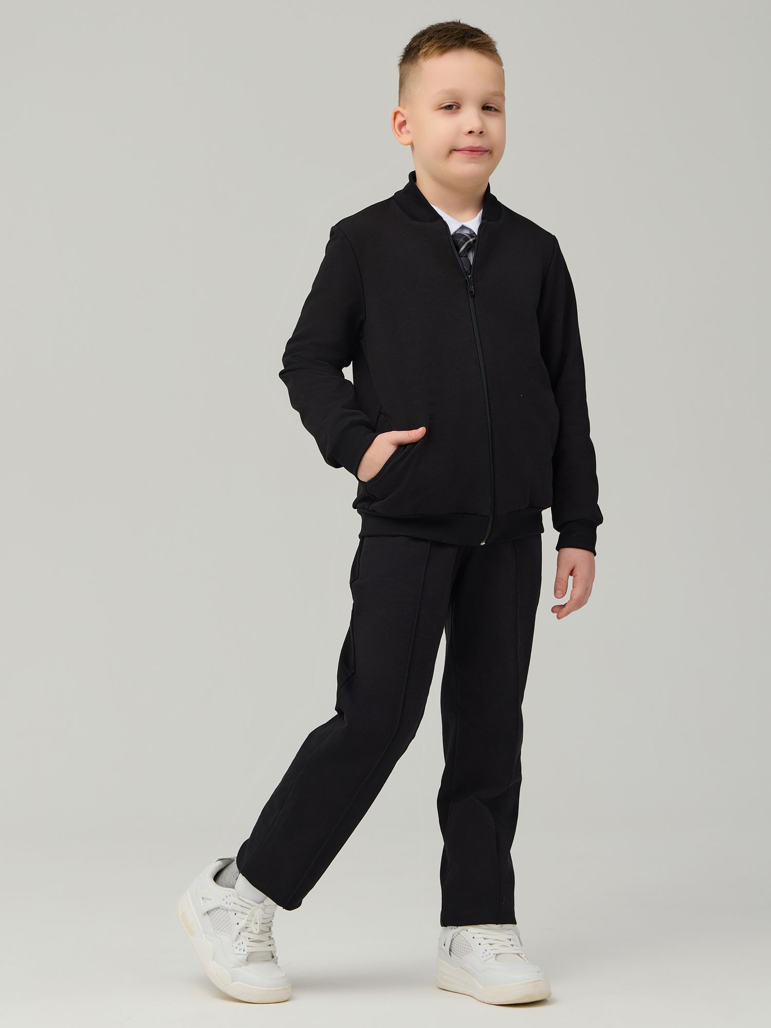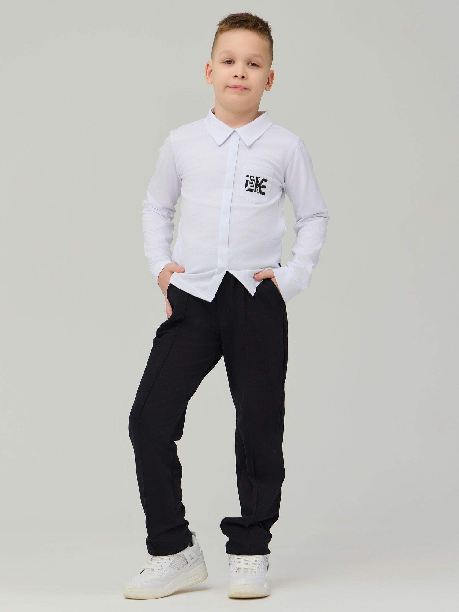Школьные брюки "унисекс" из футера черного цвета для мальчика прямого силуэта с боковыми карманами и имитацией гульфика . Детские брюки выполненые из трикотажа премиального качества - ПЕНЬЕ, с содержанием хлопка 92% .Брюки очень комфортны - без молнии и пуговиц, на эластичном поясе. Брюки на резинке не давят на живот, их легко снимать, переодеваясь на физкультуру. Трикотажные брюки имеют застроченные складки - Вам не придется каждый вечер отглаживать стрелки. Классические брюки при необходимости можно носить с ремнем, для этого на поясе имеются шлевки. Трикотажные хлопковые штаны приятны к телу, в них Вашему ребенку не будет жарко целый день сидеть за партой, а также они очень легки в уходе. Детские брюки идеально подойдут как для непоседливых учеников начальных классов, так и для страшеклассников, Трикотаж не мнётся и хорошо сохраняет форму при длительной носке. Изделие выполнено из трикотажа премиального качества - ПЕНЬЕ, с содержанием хлопка более 92%