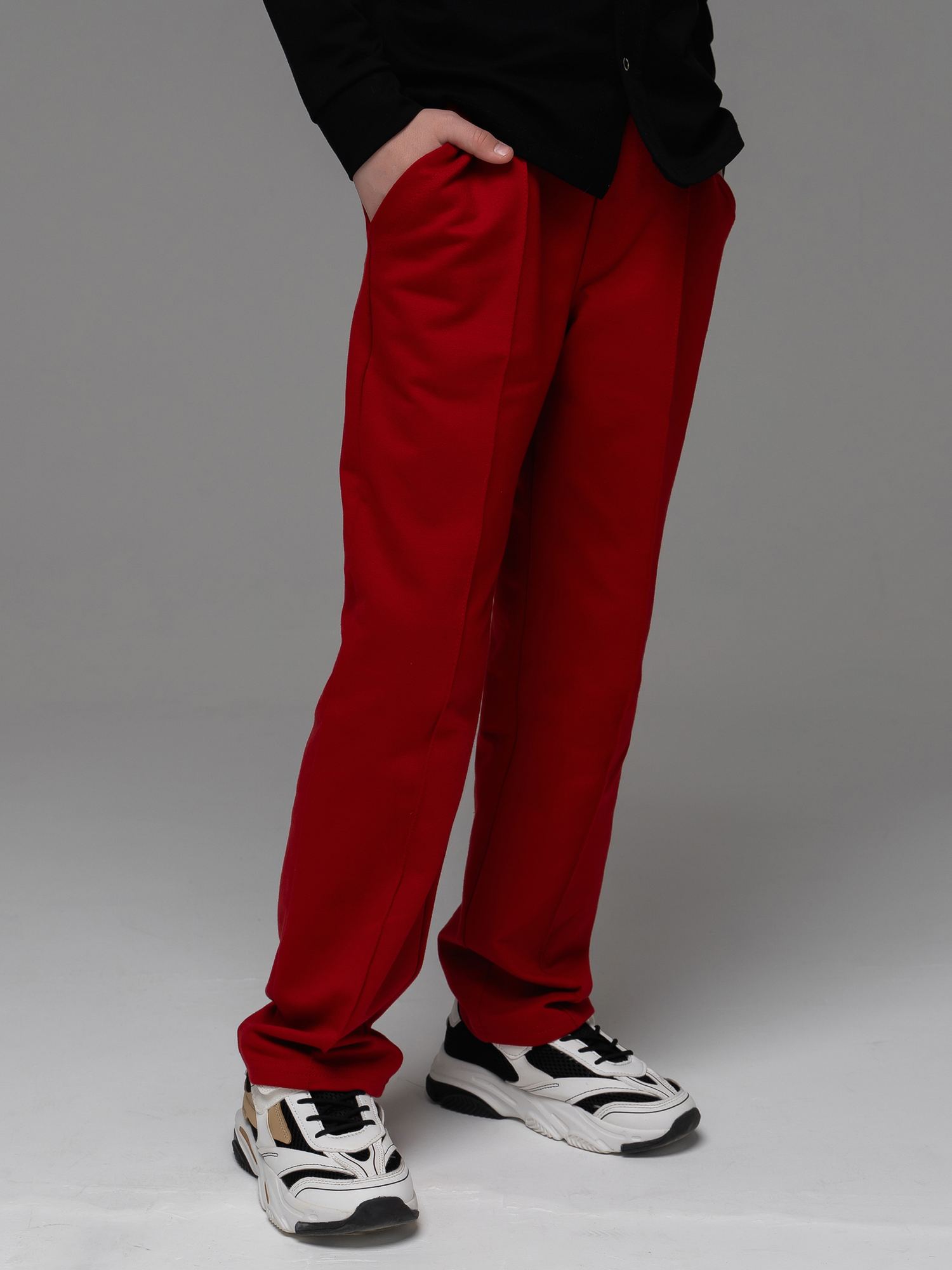 Школьные брюки "унисекс" из футера красного цвета прямого силуэта с боковыми карманами и имитацией гульфика , на поясе- брендированный отделочный элемент. Детские брюки выполненые из трикотажа премиального качества - ПЕНЬЕ, с содержанием хлопка 92% .Брюки очень комфортны - без молнии и пуговиц, на эластичном поясе. Брюки на резинке не давят на живот, их легко снимать, переодеваясь на физкультуру. Трикотажные брюки имеют застроченные складки - Вам не придется каждый вечер отглаживать стрелки. Классические брюки при необходимости можно носить с ремнем, для этого на поясе имеются шлевки. Трикотажные хлопковые штаны приятны к телу, в них Вашему ребенку не будет жарко целый день сидеть за партой, а также они очень легки в уходе. Детские брюки идеально подойдут как для непоседливых учеников начальных классов, так и для страшеклассников, Трикотаж не мнётся и хорошо сохраняет форму при длительной носке. Изделие выполнено из трикотажа премиального качества - ПЕНЬЕ, с содержанием хлопка более 92%