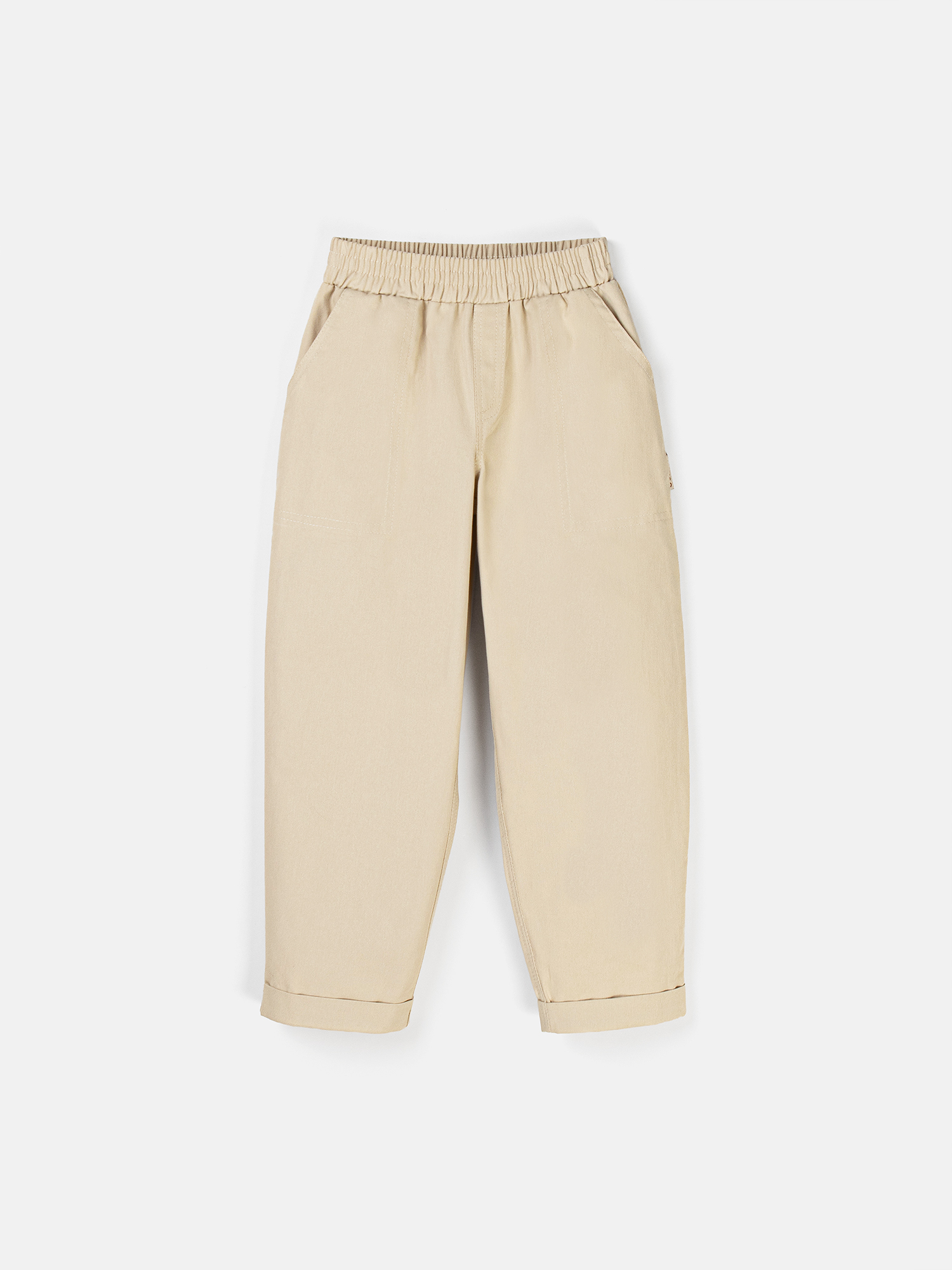 Мягкая резинка надежно фиксирует брюки на поясе.