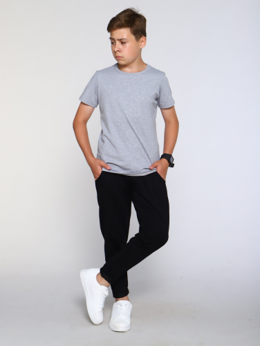 Детские штаны сшиты из трикотажа с хлопком с карманы в боковых швах. Модель штанов прямого кроя, с контрастным поясом на резинке, с отделкой регулировочным шнурком, удобная посадка на талии.