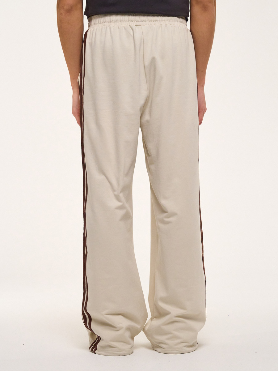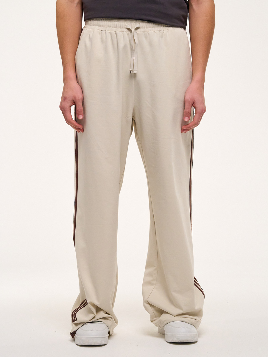 Брюки из трикотажа средней плотности. Пояс на резинке с регулируемыми шнурками для комфортной носки. По бокам полоски в спортивном стиле.