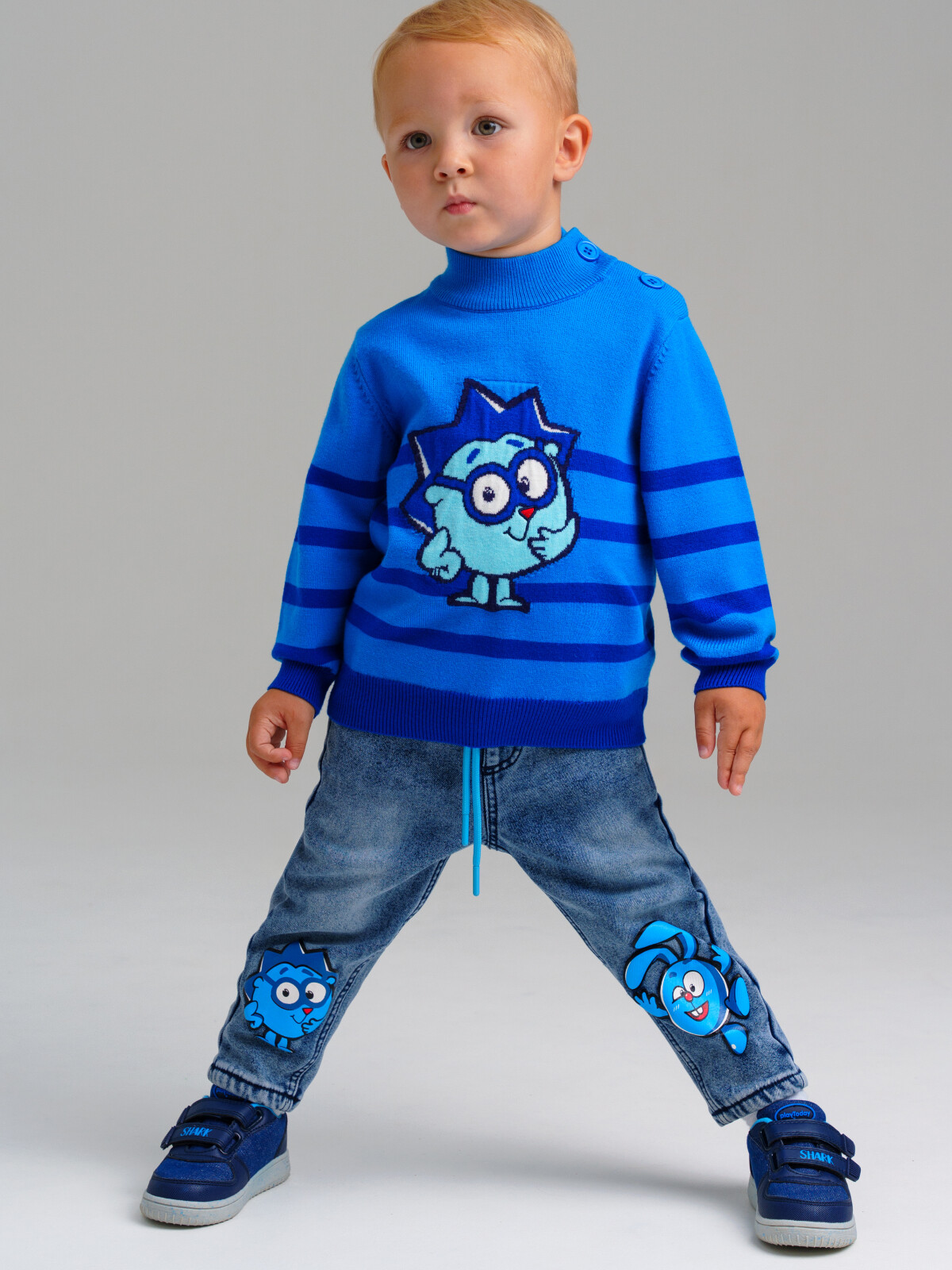 Джинсы детские с флисом для девочки. Модные утепленные джинсы comfort fit (свободная посадка) на резинке со шнурком. Боковые карманы. Модель из капсульной коллекции СМЕШАРИКИ. Соберите полный образ в едином стиле!