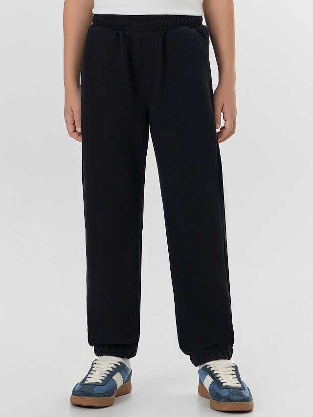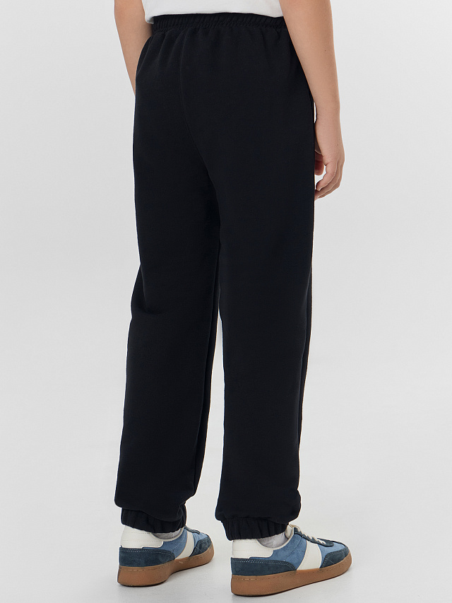 Брюки-джоггеры для мальчиков. Пояс отрезной с втачной эластичной тесьмой, внутри шнур. Пояс прострочен двумя отделочными строчками. По переду обработаны карманы с отрезным бочком. Низ брюк застрочен с эластичной тесьмой на двухигольной плоскошовной машине.