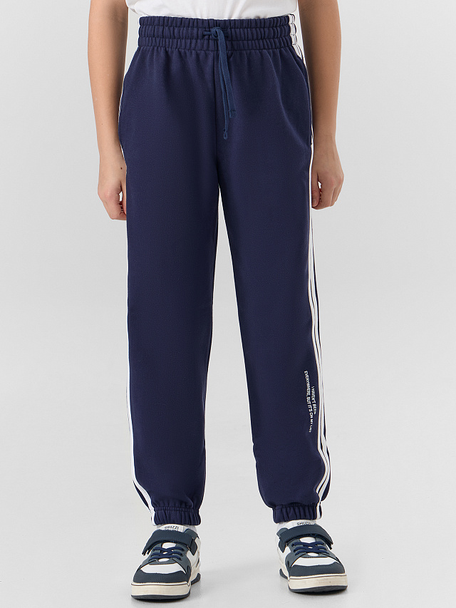Нижние срезы обработаны в подгибку с эластичной тесьмой внутри 30RV. По бокам настрочены лампасы.
