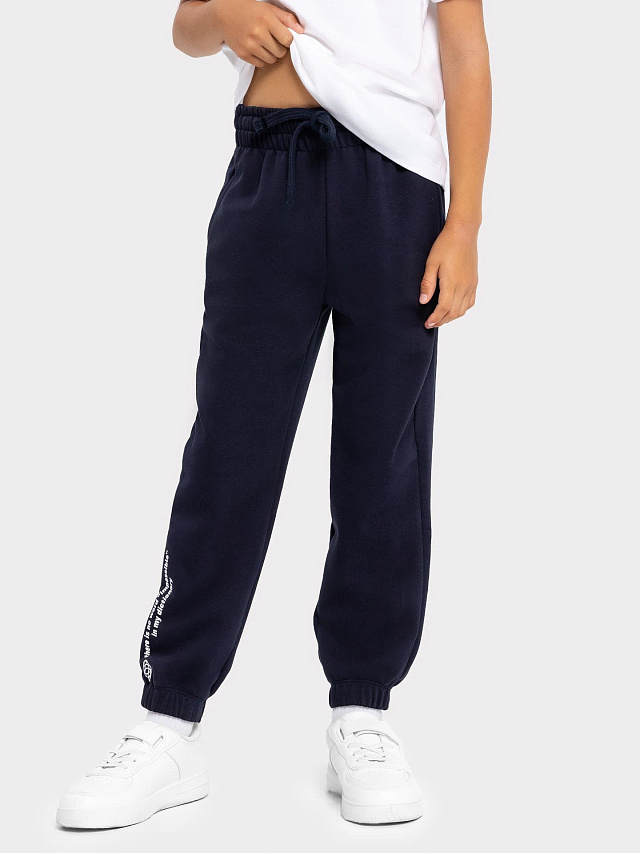 Брюки для мальчиков джоггеры темно-синие с печатью