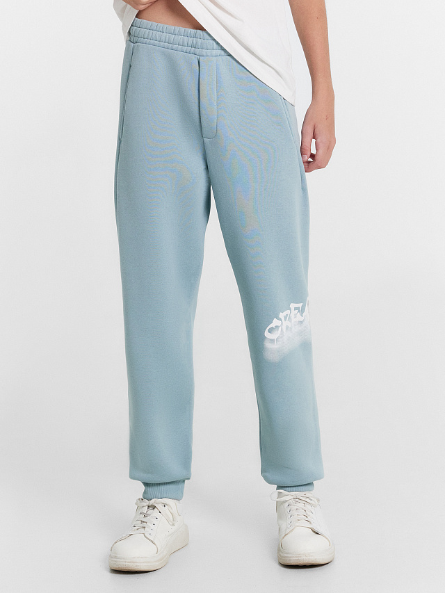 Брюки для мальчиков в пыльно-синем оттенке с печатью