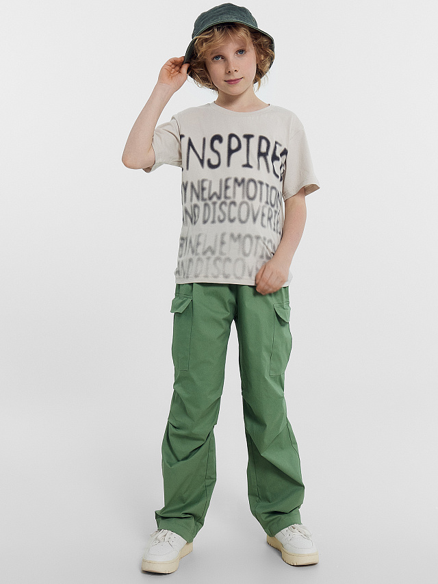 Стильные брюки для мальчиков карго из высококачественного хлопка. Модель имеет высокую посадку. Пояс с эластичной тесьмой внутри. На передних деталях карманы с отрезным бочком. По боковым швам накладные карманы с клапаном. На середине колена, передней детали заутюженные декоративные складки. Материал изделия прекрасно держит форму, не скатывается после стирок и позволяет коже дышать в жаркий день. Практичный вариант для ежедневной носки. Широкий размерный ряд. Рекомендуем!